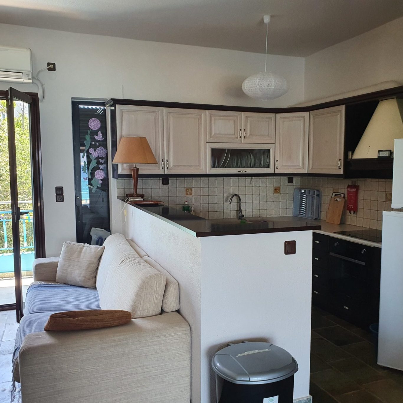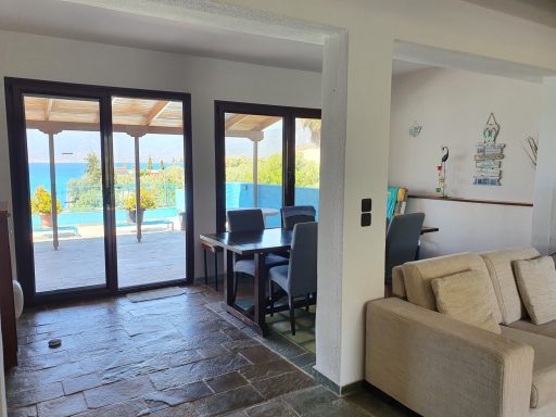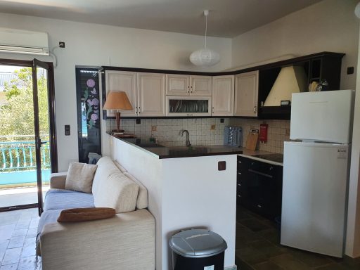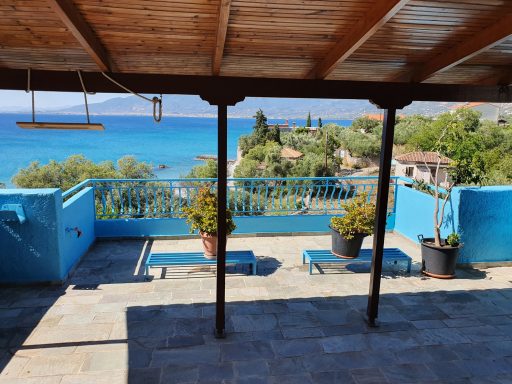 My family and I spent a week-long vacation. The upstairs apartment consists of 2 bedrooms and a living room that is connected to the kitchen and dining room. There is also a bathroom. From the living room there is access to the terrace with a beautiful and mesmerizing view of the sea! There is also a second 1-bedroom apartment with its own bathroom downstairs. Both upstairs and downstairs are clean, pretty well equipped. A very good base for sightseeing. Close to the city and charming places along the coast. Highly recommend it!